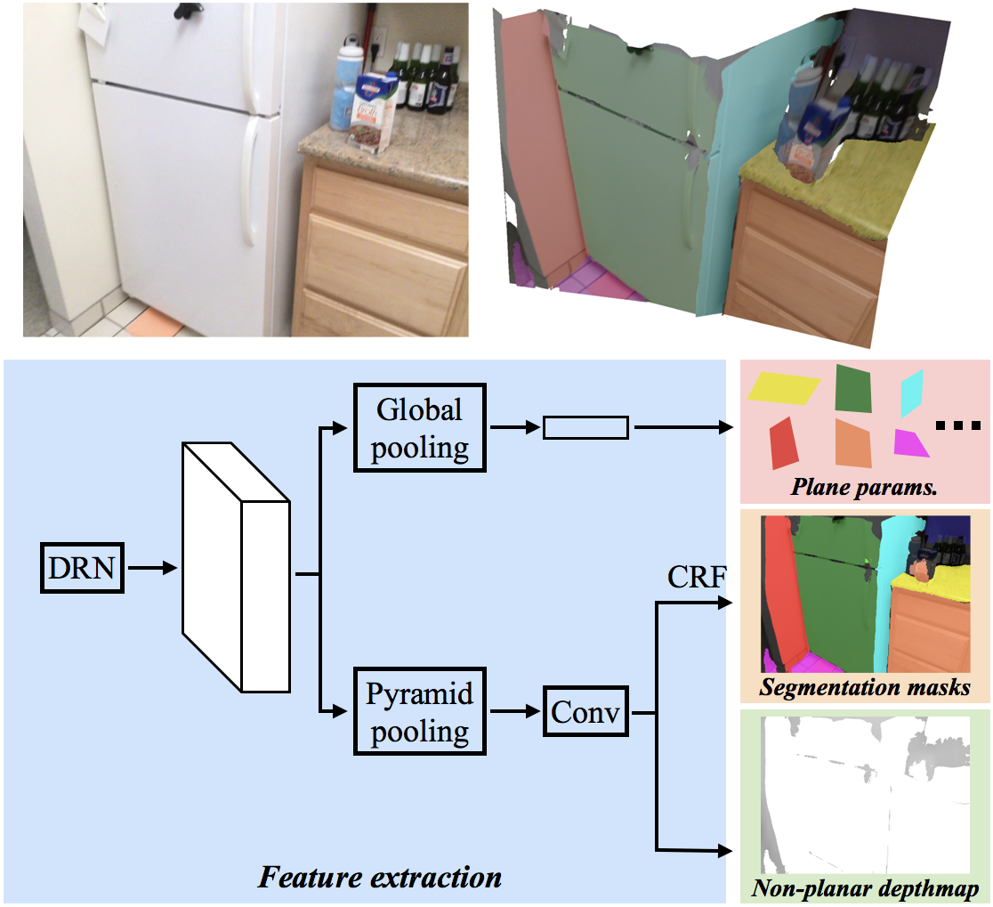 PlaneNet: Piece-wise Planar Reconstruction from a Single RGB Image (2018 CVPR) [Paper] [Code]