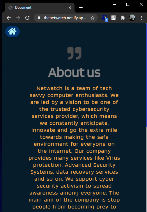 Greetings, We have named our Project as "Netwatch" which is basically a cyber security technology provider project. Aimed at empowering lives of people to fight against the greatest challenge of the digital age - cybercrime , by various means like spreading awareness through social media platforms to reach the masses and by providing customer oriented services.