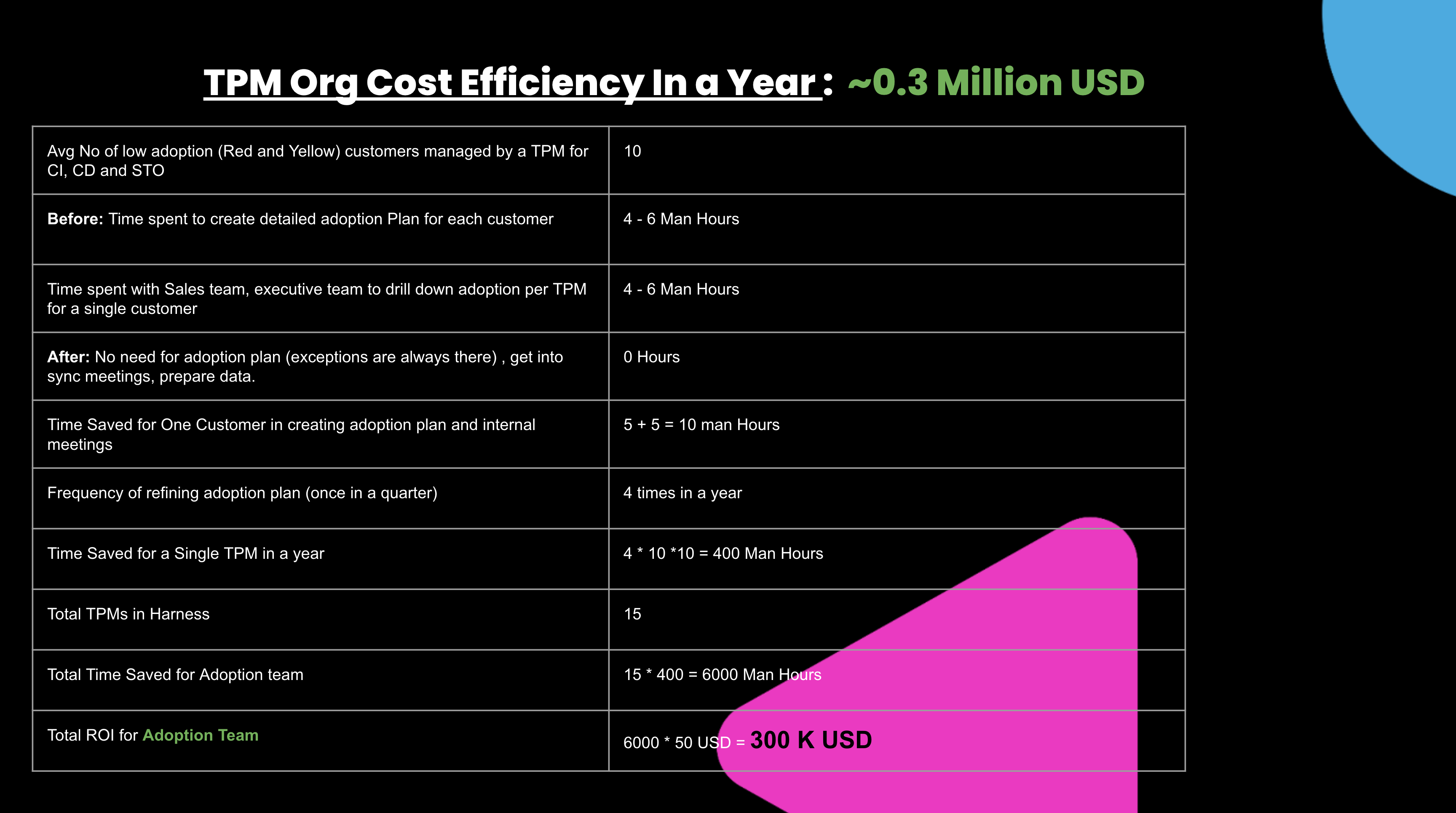 Adoption Maturity Dashboard - Our solution caters to two personas i.e. customer sponsor and technical program managers to drive effective adoption.