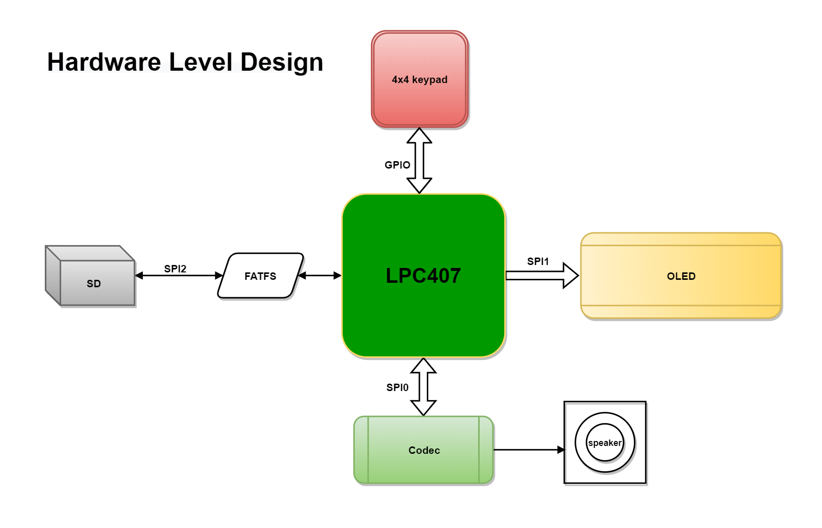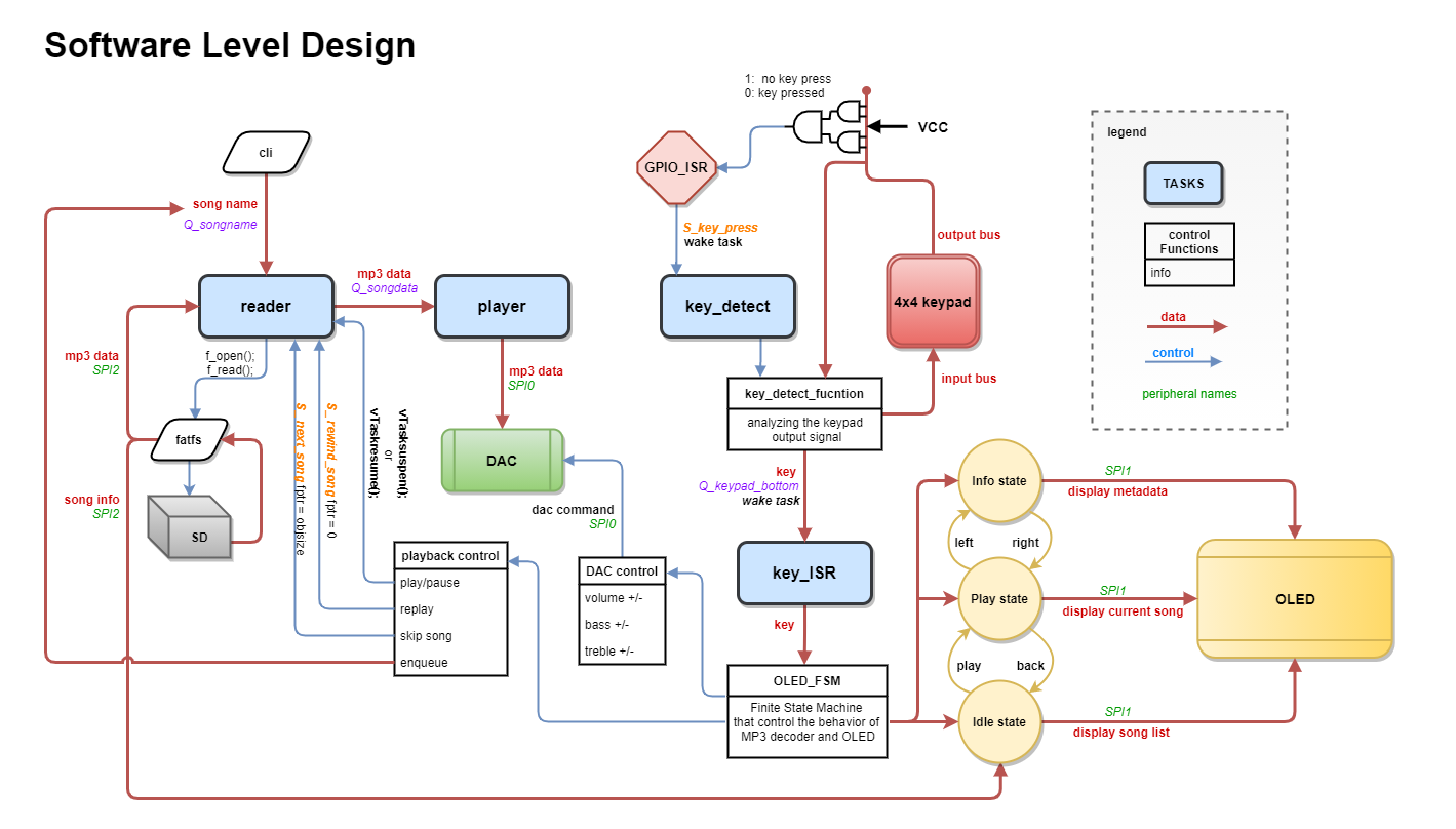 A real-time MP3 player system built on FreeRTOS for the LPC4078F microcontroller. This embedded system integrates file system management, multitasking audio decoding, and interactive user control through a matrix keypad and OLED display—demonstrating complete software and hardware co-design.