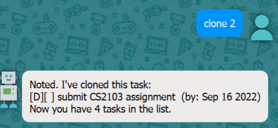 Clones an existing task using the task index, this provides an easy way to add a new task without having to type all the similar information again.