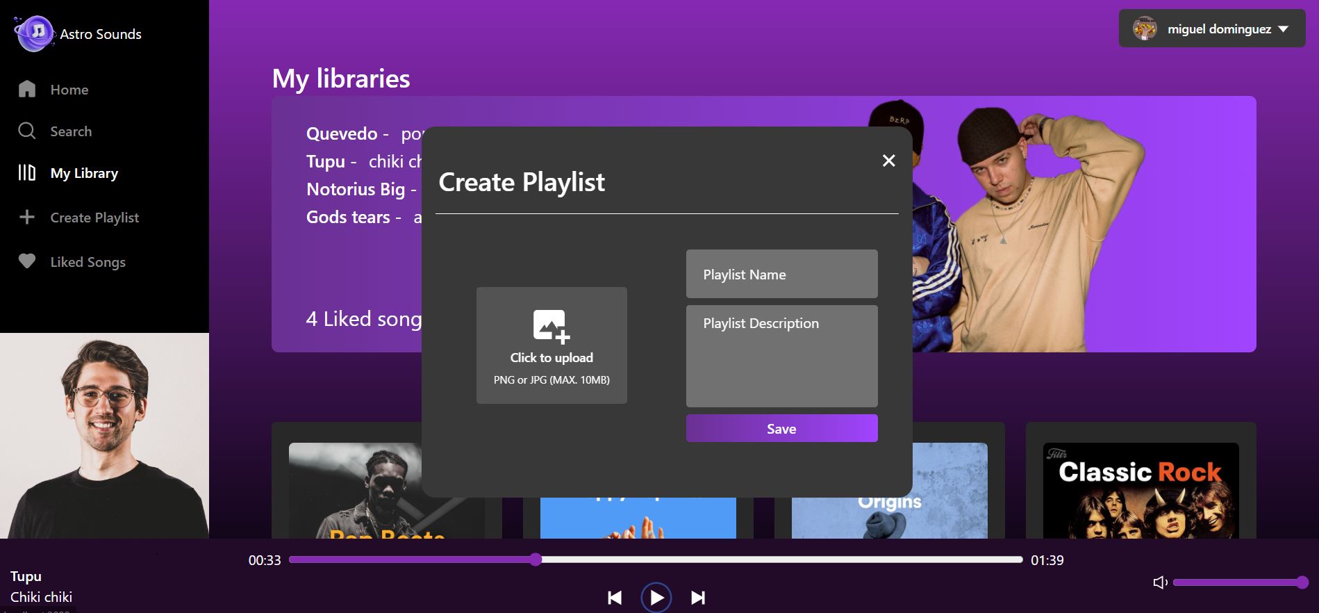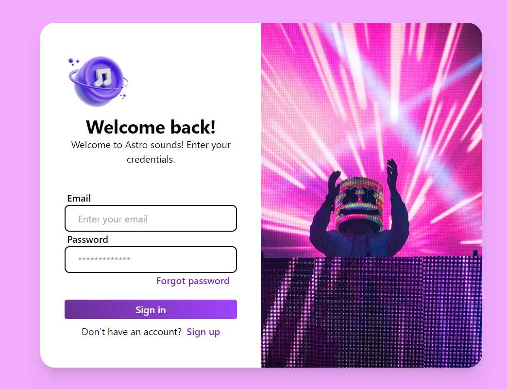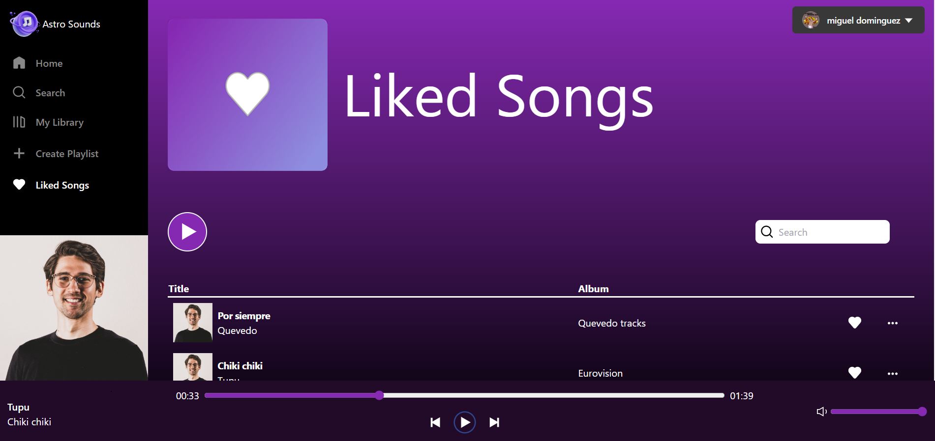 As the final project for Assembler's Master in Technology our team decided to create AstroSound. In this project we were challeged to create a full backend/frontend app, we could have as an inspiration and having similar functionalities as the app Spotify. AstroSound is a music app similar to Spotify, where a user can login/register, create playlists, add songs to those playlists and listening to songs, there is also an Admin page to add new songs.