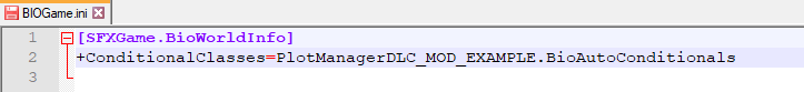 THIS TUTORIAL IS DEPRECATED. While the methods described below will still work, there are easier alternatives. Startup files can now be generated as part of a DLC Starter Kit, including stubs for plot data. Conditionals can now be added more easily than the method discussed below due to script editor improvements. They can be added directly into the BioAutoConditionals class via script editor. Copy the format in any other vanilla startup's BioAutoConditionals class to add new conditionals to your automatically generated Startup file.