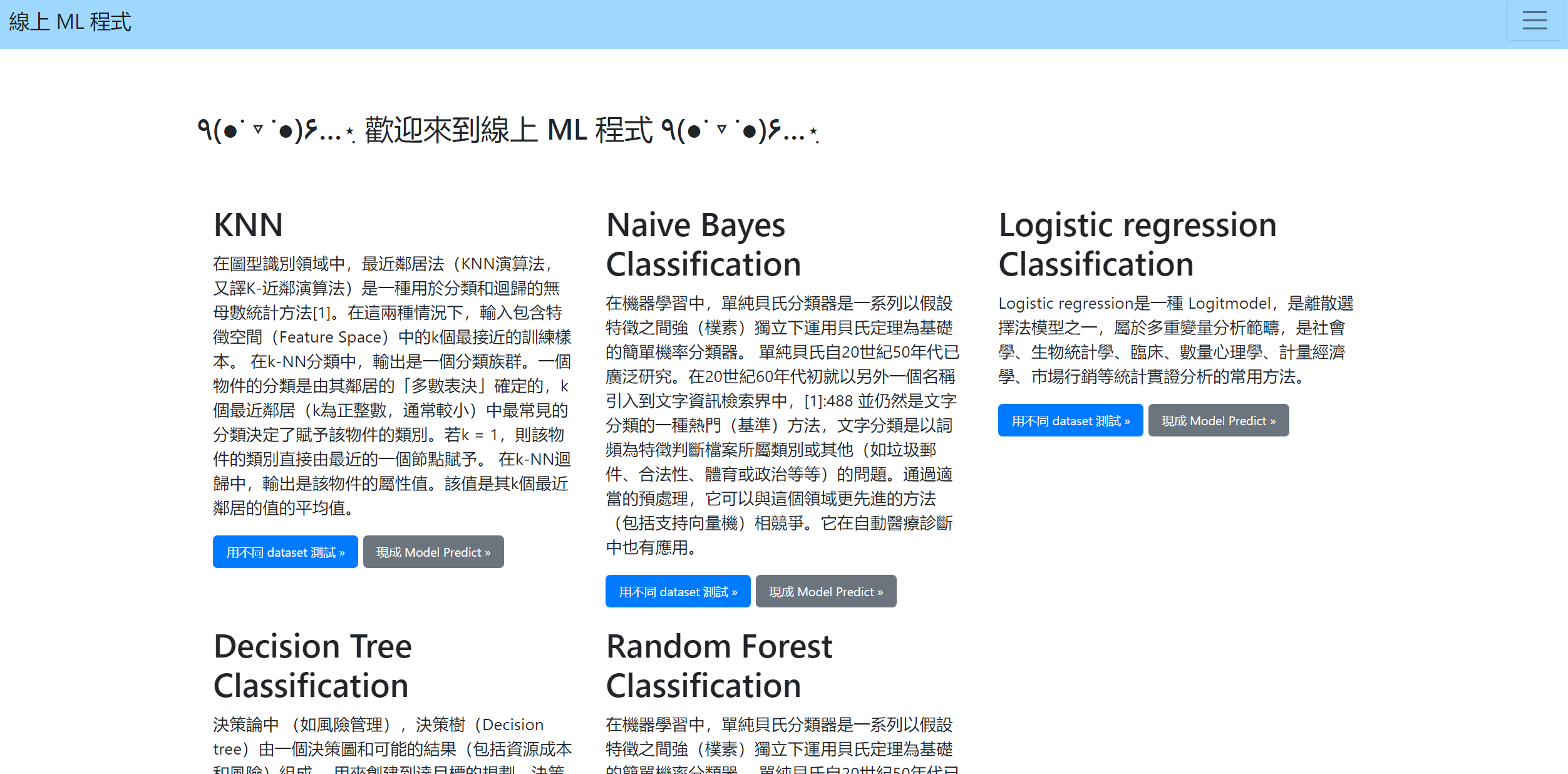 - 呈現 ML Algorithm Page