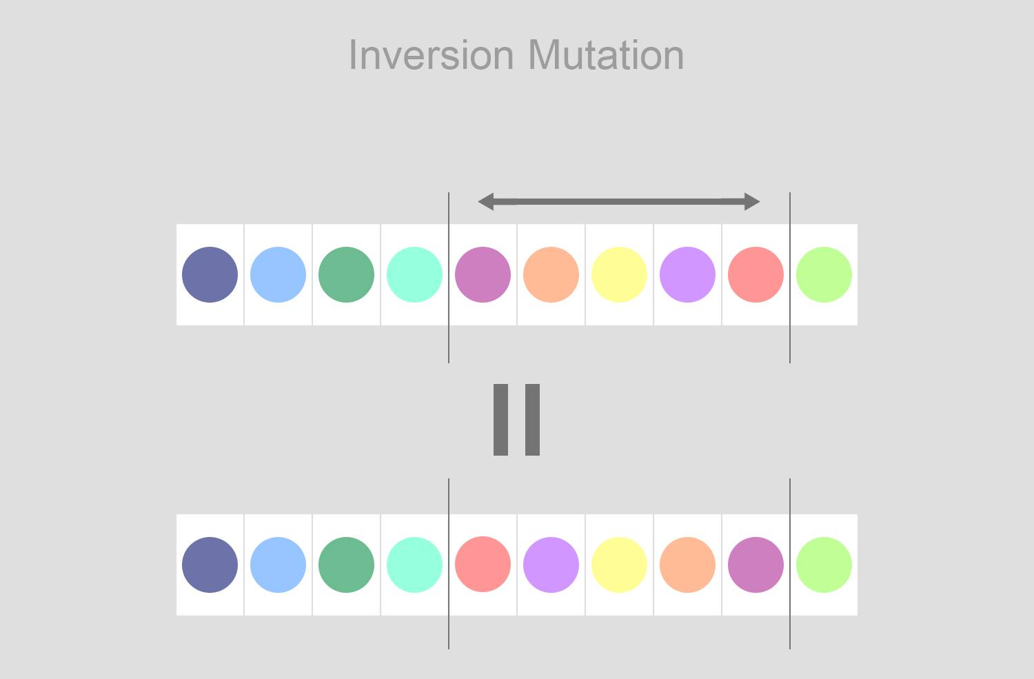 Unlike crossovers, mutations are "avoidable". In other words, theoretically a genetic algorithm can still work without them. But the results are going to be far worse. As without an entropy (that every single mutation brings) the algorithm will stuck in a local optima. Mutations usually have a low chance to be used on an offspring to keep some stability. Below are pictures illustrating the mutations I used while implementing the TSP solver (since it's pretty easy without pseudocode).