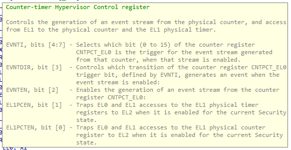 Hovering over a system register in the IDA View subview or in the Pseudocode subview will display a summary (usually kept under 30 lines) of the relevant documentation page, including the bitfield when available.