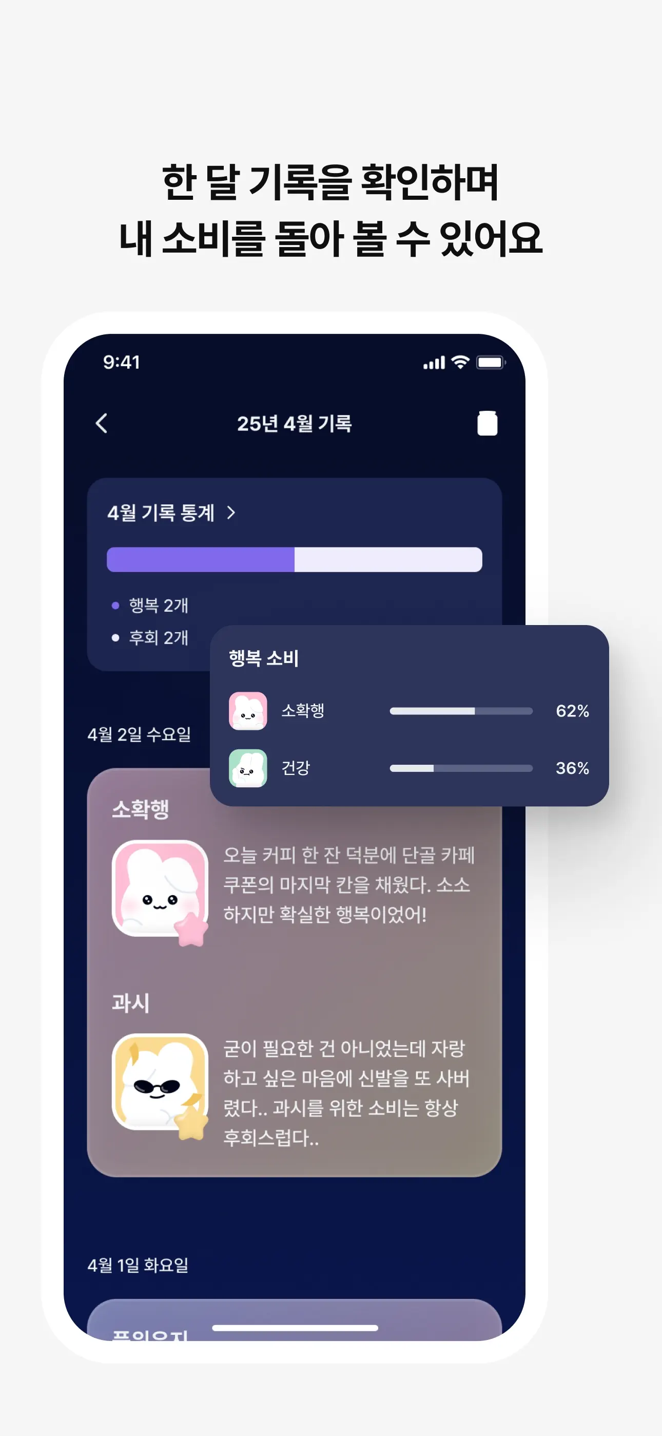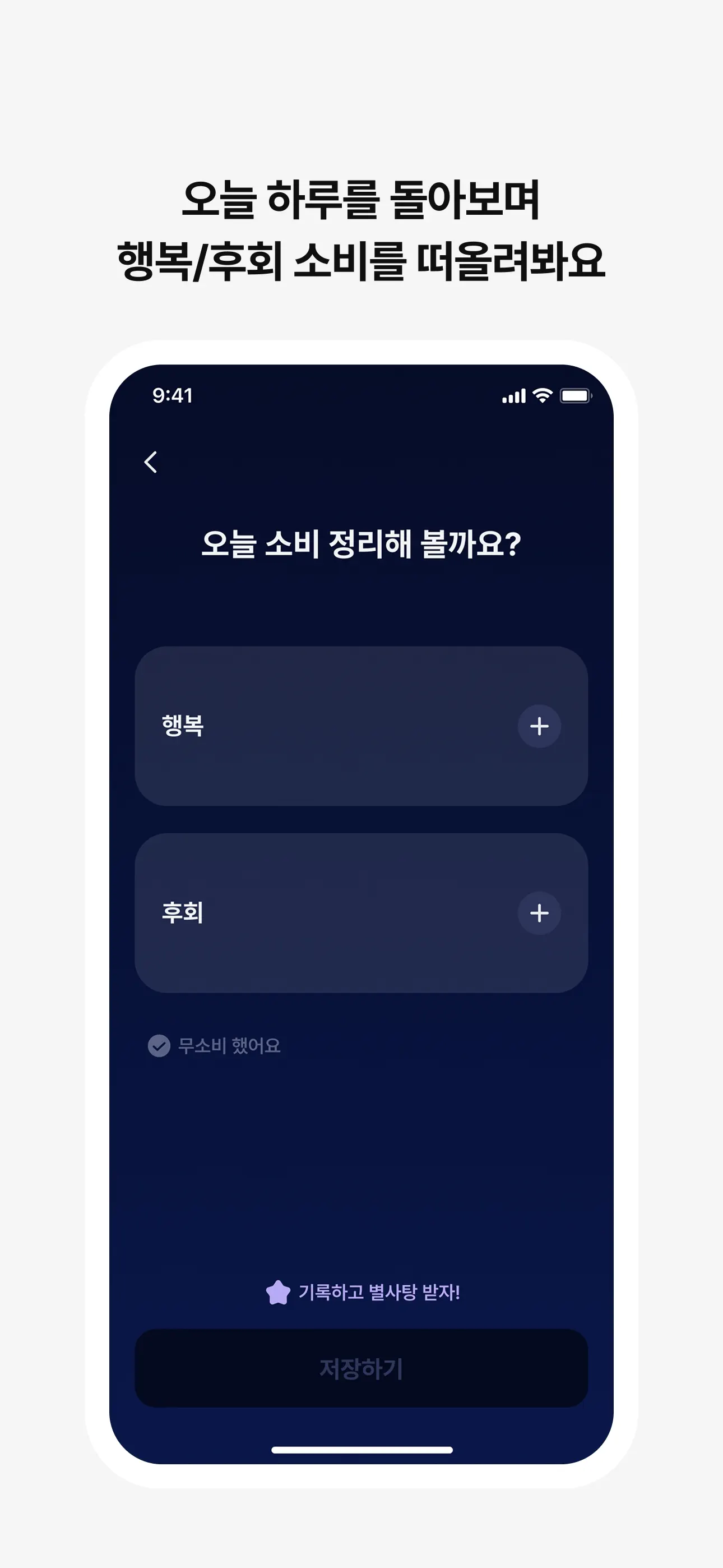 ‘행복’과 ‘후회’ 소비를 하루 1개씩만 기록하며 내 습관을 알아보세요.