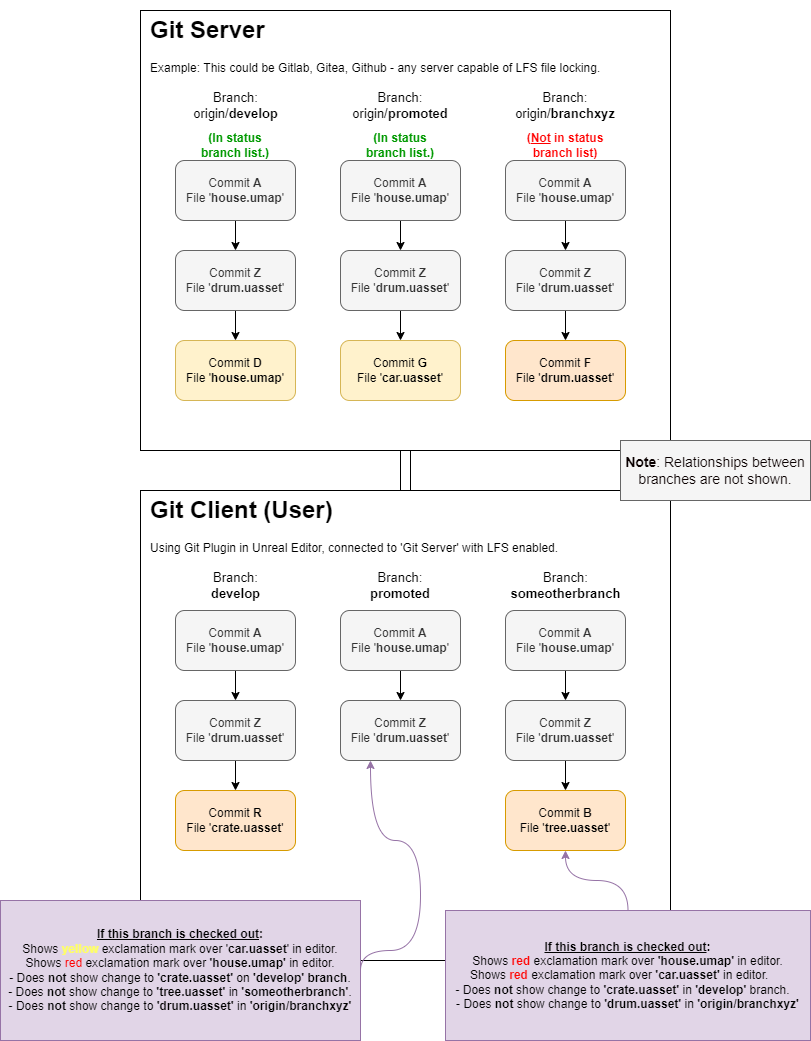 Additionally, if you're switching back and forth between two or more branches locally you'll need to keep track of what branch you've made changes to locked files, as the system will not prevent you from modifying the same locked file on multiple different branches!