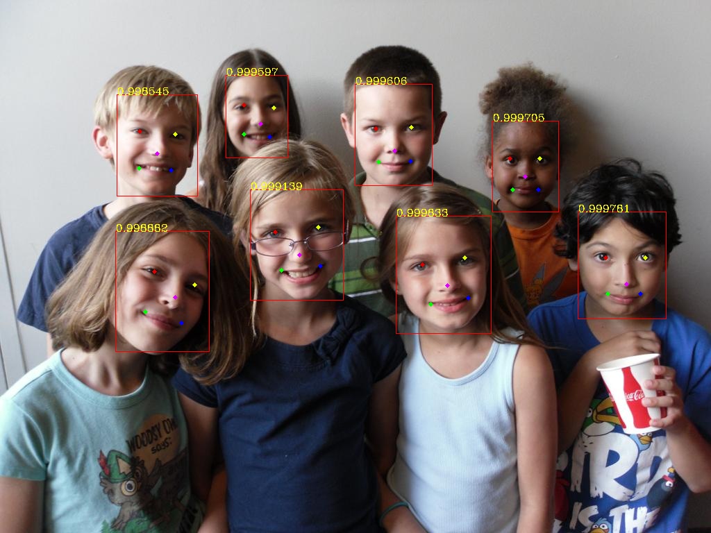 This C ++ application detects faces in a scene. At the same time, the characteristic landmarks are located so that you can use them as input for a face recognition algorithm. (see: Face recognition).