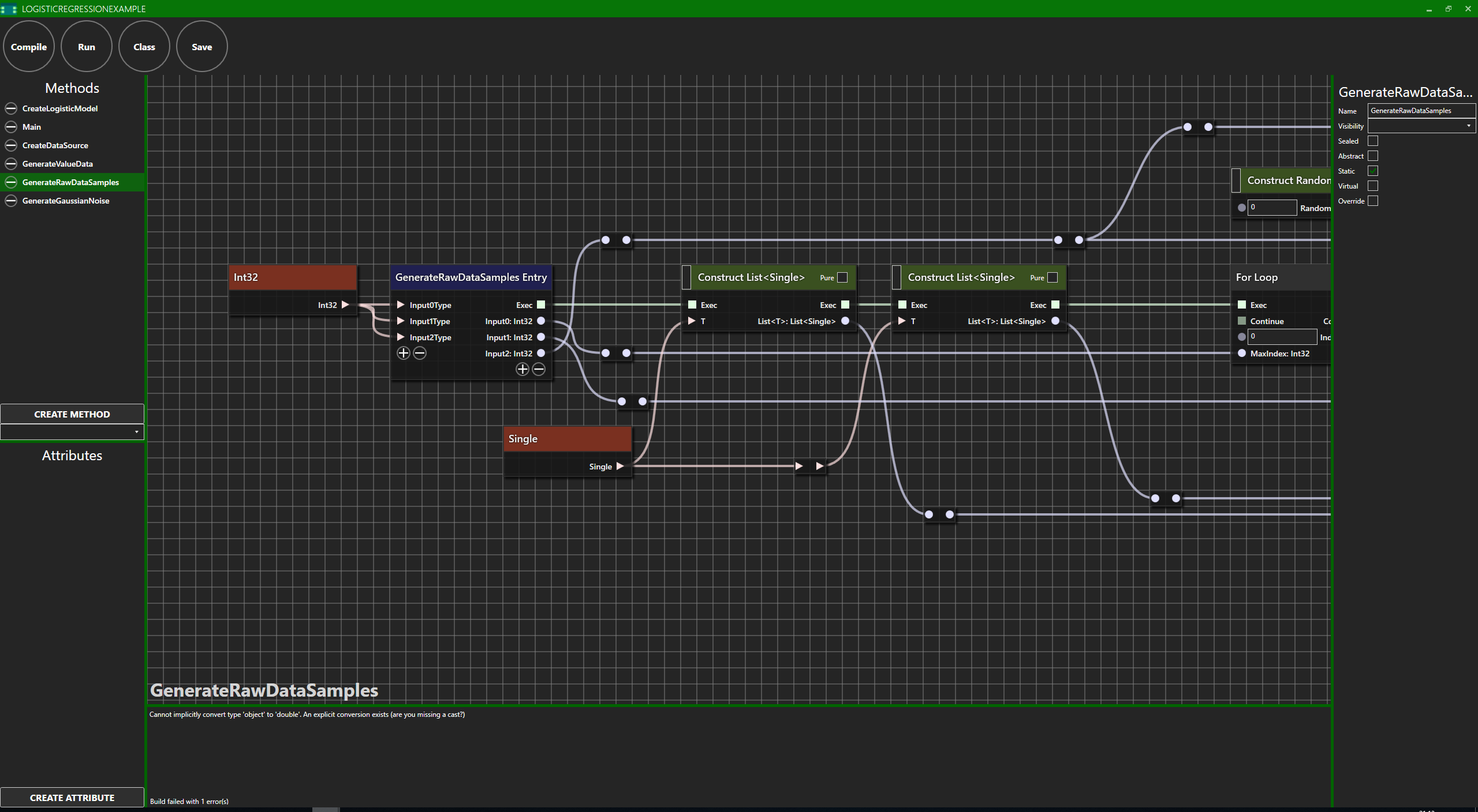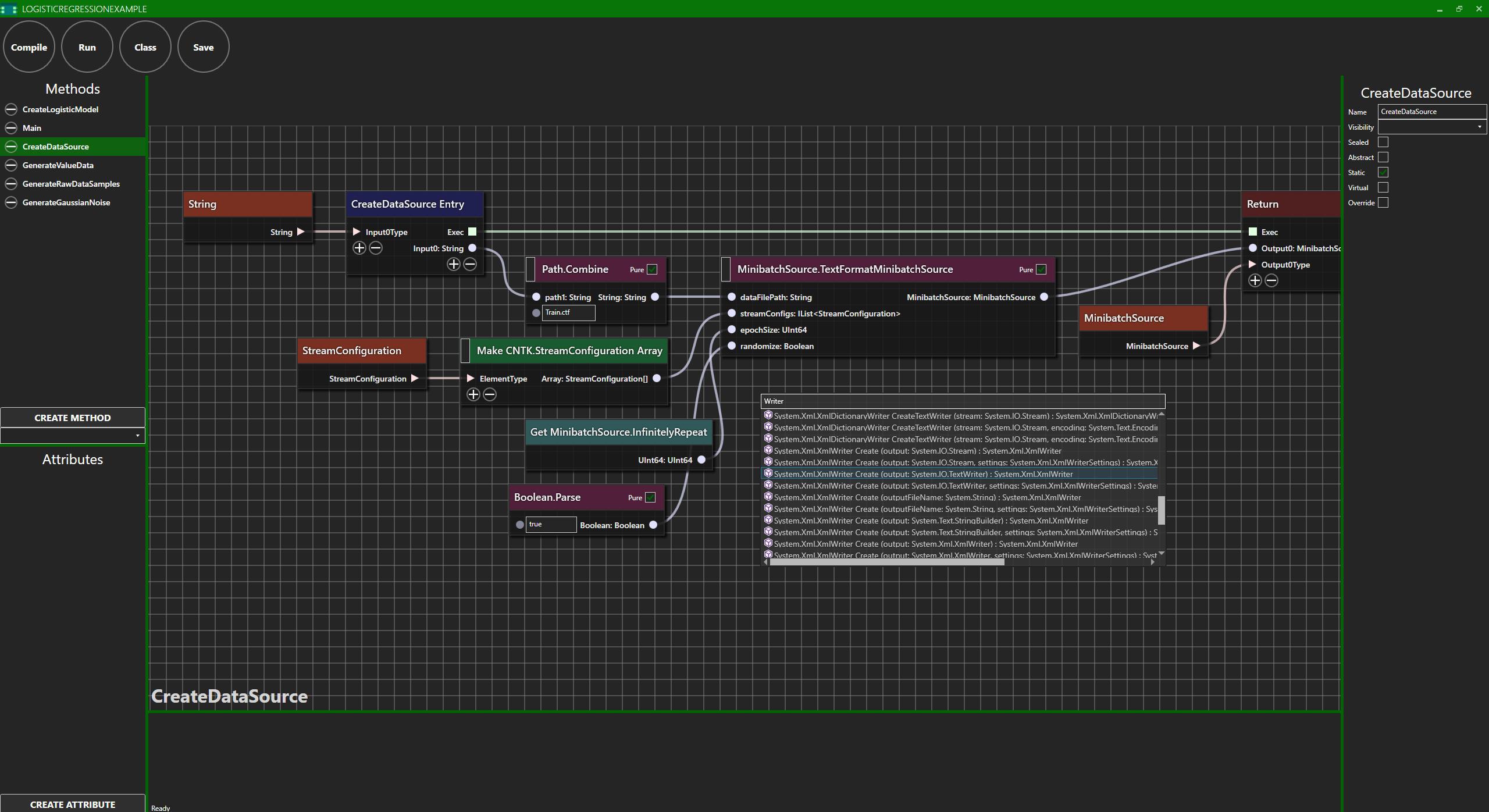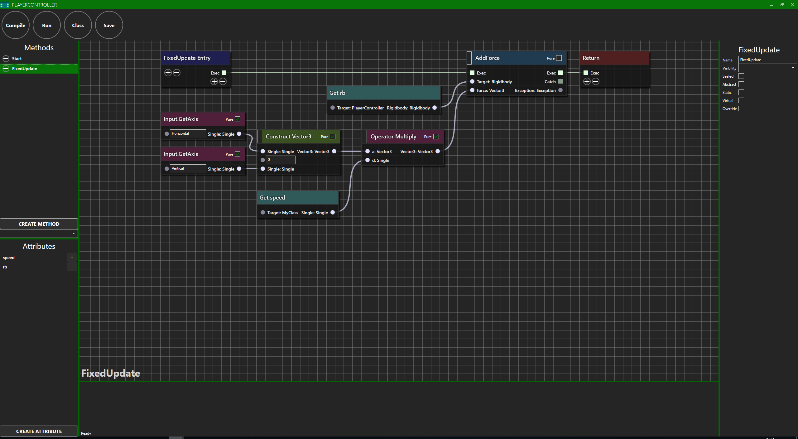 NetPrints is a visual programming language inspired by Unreal Engine 4's Blueprints which compiles into .NET binaries or alternatively C# source code. These can be used from any other .NET language (eg. C#) or used as standalone programs. Furthermore any .NET binaries (both .NET Framework and .NET Core, and ideally .NET Standard) can be referenced and used. Its goal is to support using anything that is made in C#. Furthermore it can be used directly within Visual Studio in any C# projects (experimental). Overview