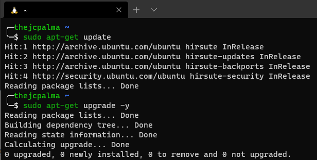 (Em principio se tiverem pacotes para atualizar, no vosso terminal o resultado dos comandos vai ser diferente)