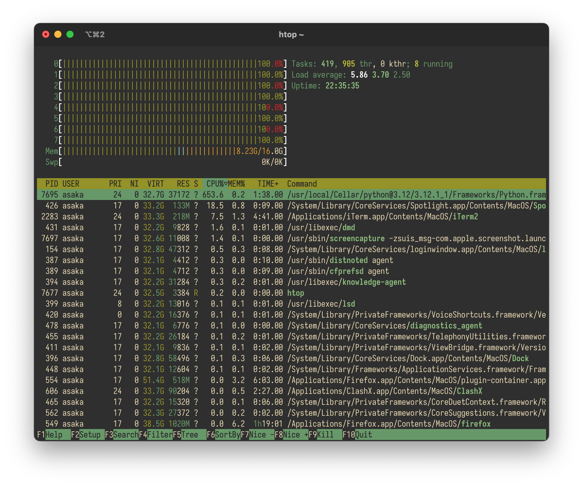 Run this code with Python3.12, you will see Python will use 8 cores of CPU: