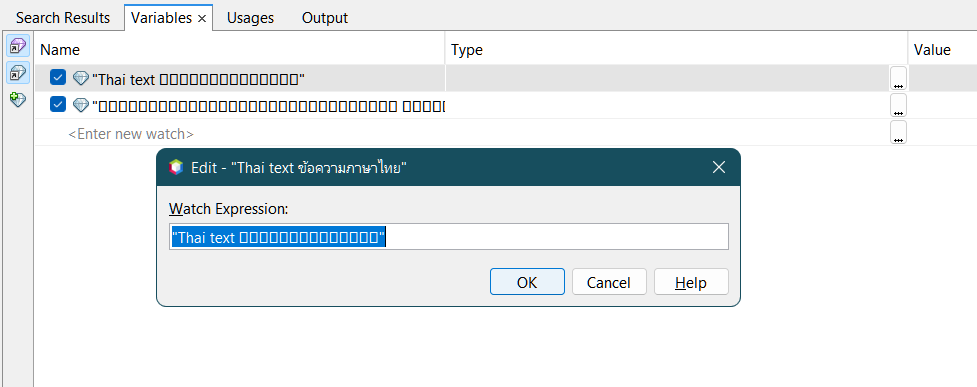 I wonder if it's possible to make Variables window display Thai text correctly instead of rectangles.