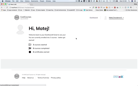 - Because we're running our React app inside of the actual LMS Django app, we can use