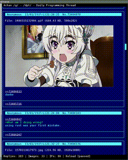 Comfy is a console application for browsing imageboards. Comfy is written in C++, is multithreaded, supports displaying images, and is very /comfy/ to use.