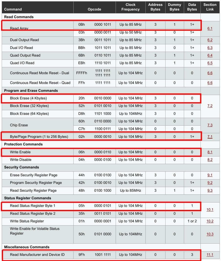 - Freq. (kHz) - maximum clock frequency for all commands (kHz).