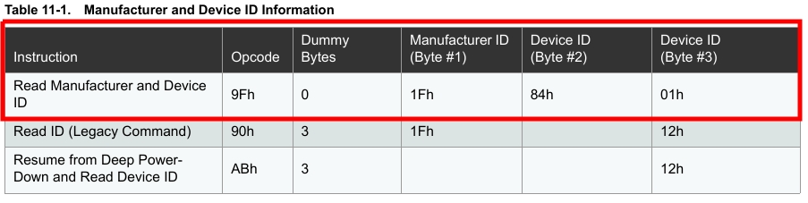 - ID1 - 1st chip ID - manufacturer (hexadecimal).