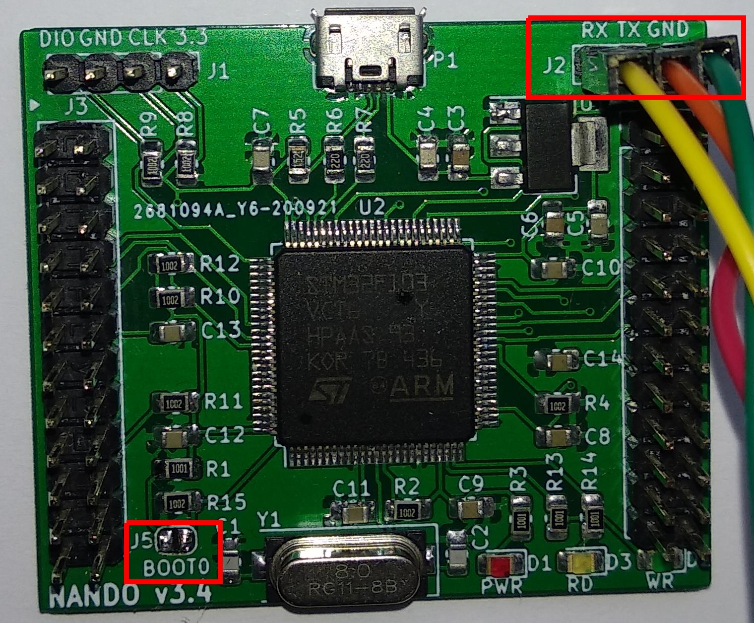 Brand-new MCU may require to be powered on with connected BOOT0 pins and sometimes additionally with RST pins (available in new PCB).