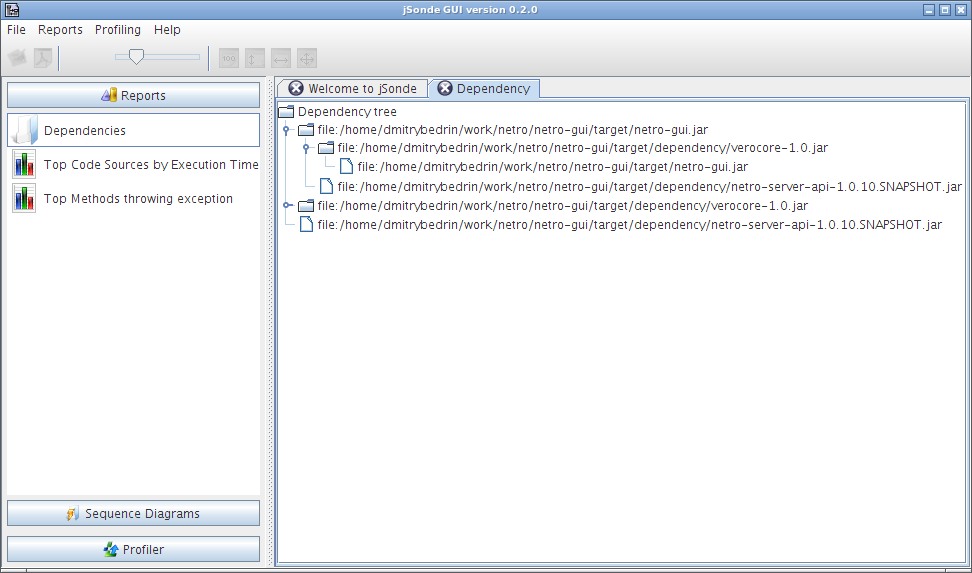 This report allows you to browse the dependencies of code sources (.jar files for example) inside your project