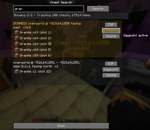 - Hacklist has the ability show the count of detected ESP items/blocks/entities (BedESP, SignESP, WorkstationESP, RedstoneESP, ChestESP, MobsearchESP, MobESP, ItemESP). They're toggled in each hack.