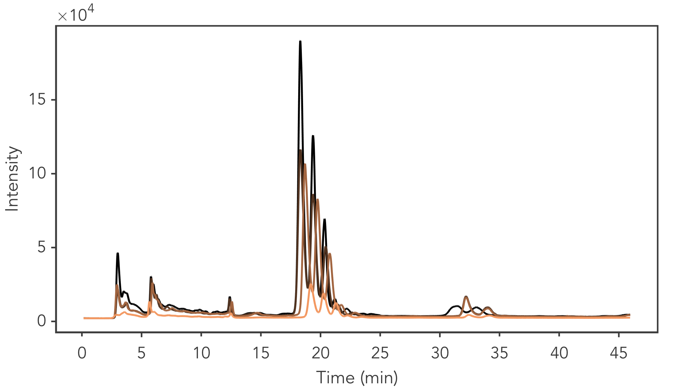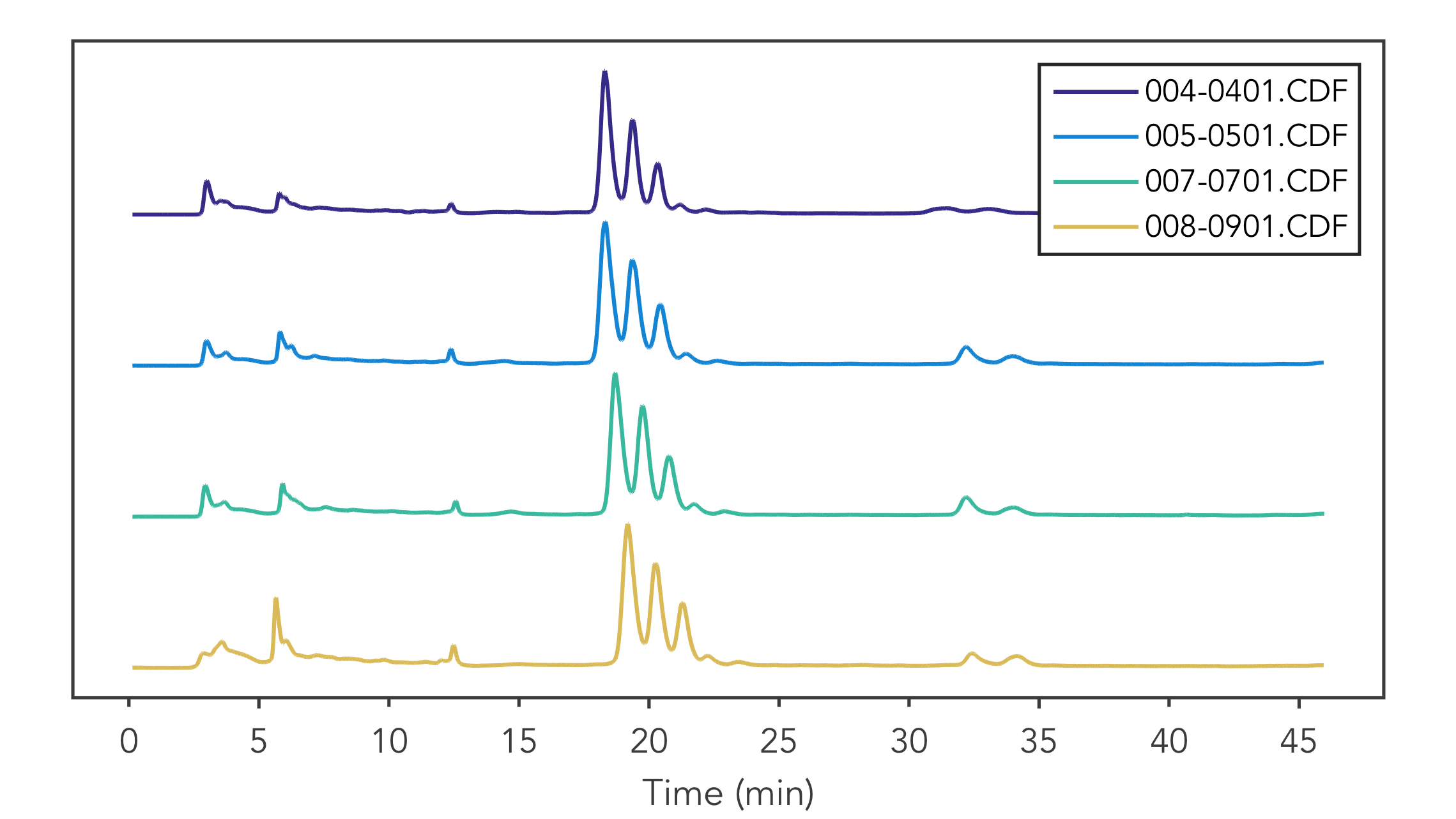 Stacks chromatograms on multiple axes by samples