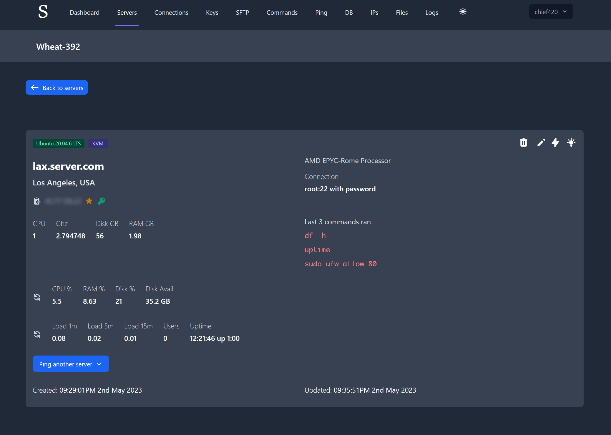 - Ping IP from any added server