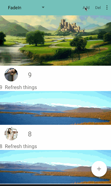 UltimateRecyclerView is a RecyclerView(advanced and flexible version of ListView) with pulling to refresh, loading more, swiping to dismiss, draging and drop, animations ,sticky header,show or hide toolbar and FAB when scrolling and many other features.You can use it just like RecyclerView