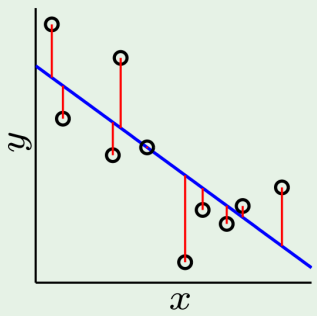 É um algoritmo que deve ser utilizado quando se deseja realizar previsões de uma variável dependente. Ela é feita ajustando os pontos do gráfico a uma reta, querendo minimizar os erros quadráticos, ou seja, minimizando o somatório das distâncias de cada ponto até a reta, como na figura abaixo:
