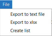 Once the samples are selected, the File menu can be used to export the samples to a text file/excel file (xlsx) or create a sample list for further processing.