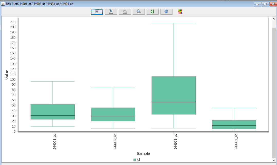 A box plot is displayed in a new frame. The toolbar of box plots is similar to that of line chart.