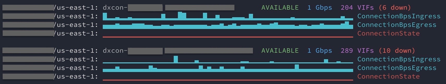 console,dx_status, andlast. Console generates sign-in URLs for the AWS Console using credentials from awsrun. Dx_status shows the status of Direct Connect circuits (terminal graphs too!). Last provides an easier way to review CloudTrail events in both an interactive and non-interactive manner. -