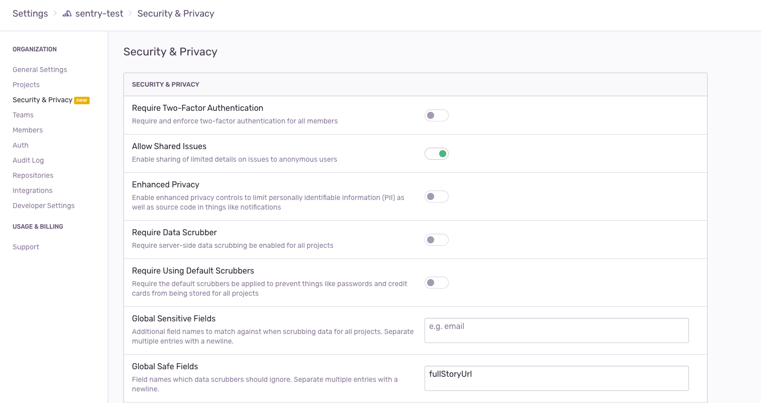 });In order for this integration to work properly, you need to whitelist the fullStoryUrl field in your Sentry settings. If you don't, the FullStory URL might be scrubbed because the session ID matches a credit card regex. To do this change, go to Settings -> Security & Privacy and add fullStoryUrl to the Global Safe Fields entry.