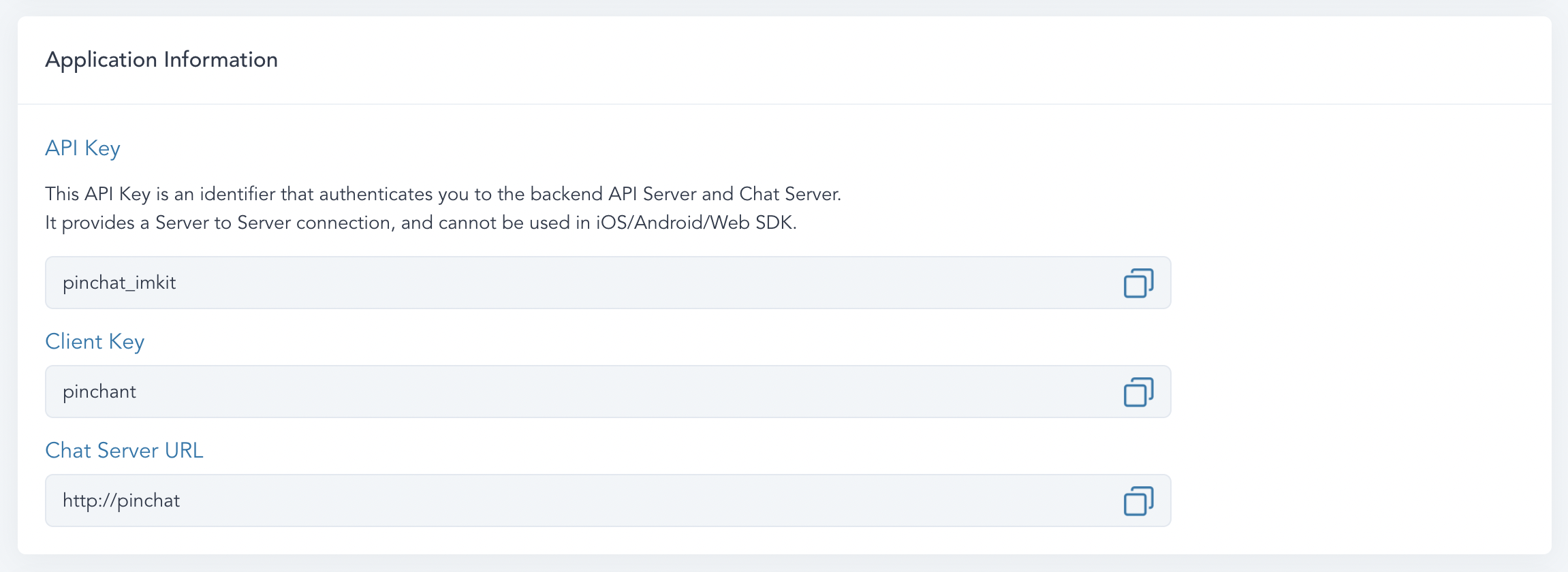 : The domain name for the chat server.clientKey