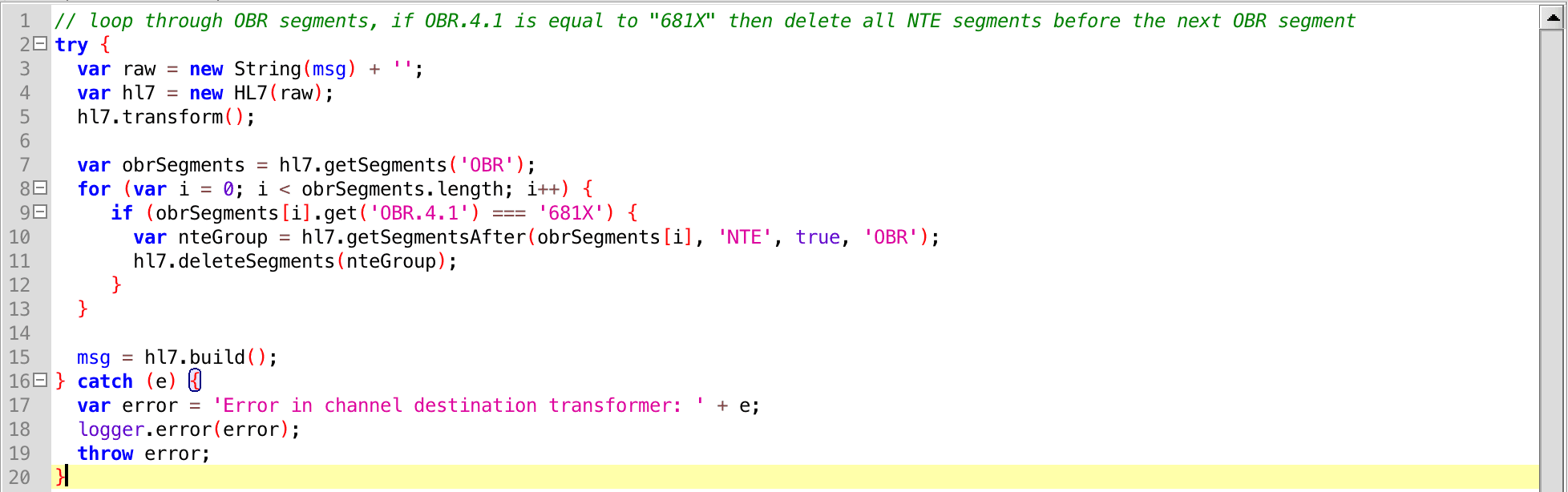 hl7.deleteSegments(hl7.getSegments('NTE'))