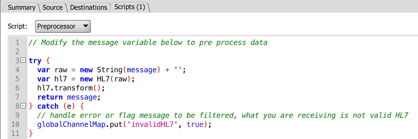 A common use case for utilizing 'hl7-standard' in mirth outside of channel transformations is evaluating an incoming message within the preprocessor. Sometimes, interface feeds receive unwanted messages that are not HL7 and they tend to cause errors and issues in the interface workflow. By adding 'hl7-standard', we can evaluate the message in the pre-processor, prior to the message being parsed by mirth.