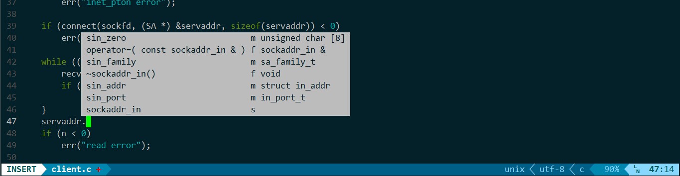 See more details and the usage of YCM at Valloric/YouCompleteMe.