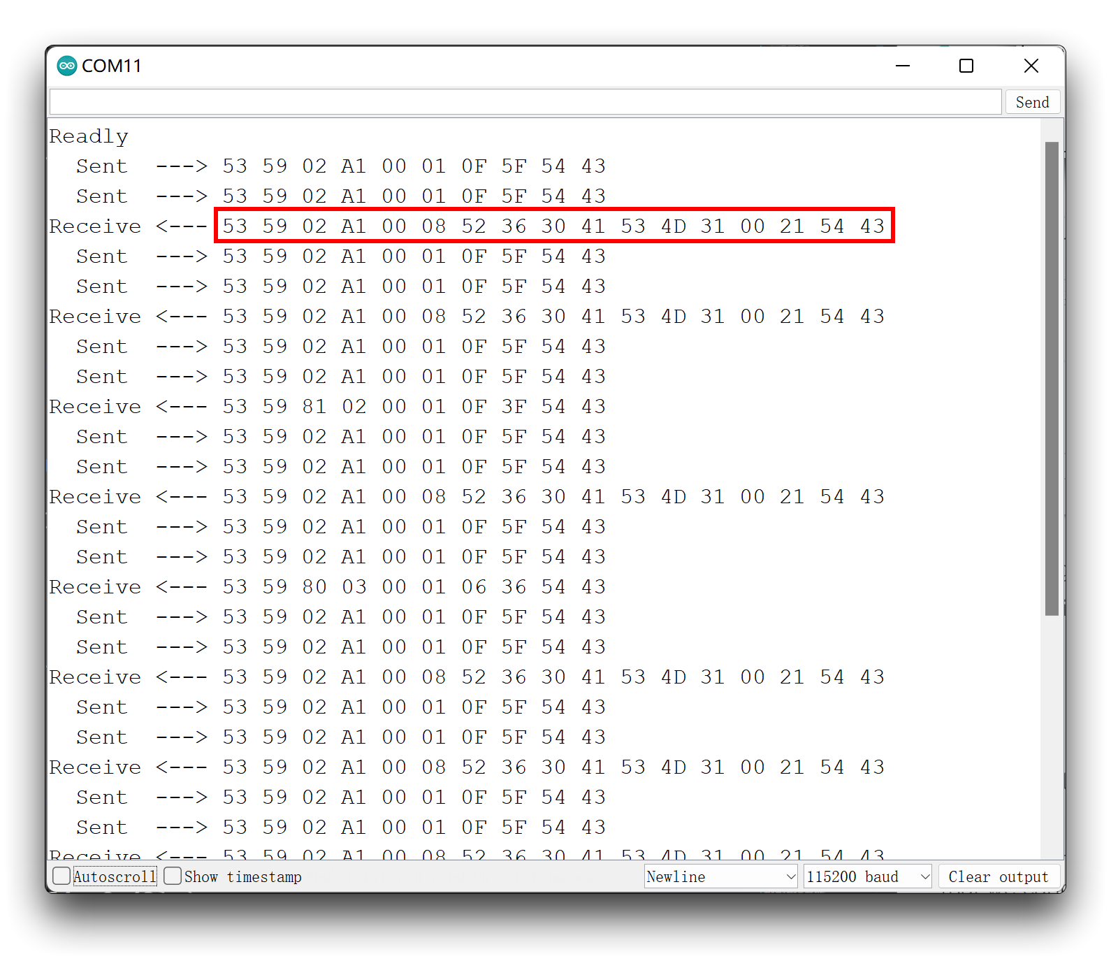 `const unsigned char DevID_buff[10] = {0x53, 0x59, 0x02, 0xA1, 0x00, 0x01, 0x0F, 0x5F, 0x54, 0x43};`