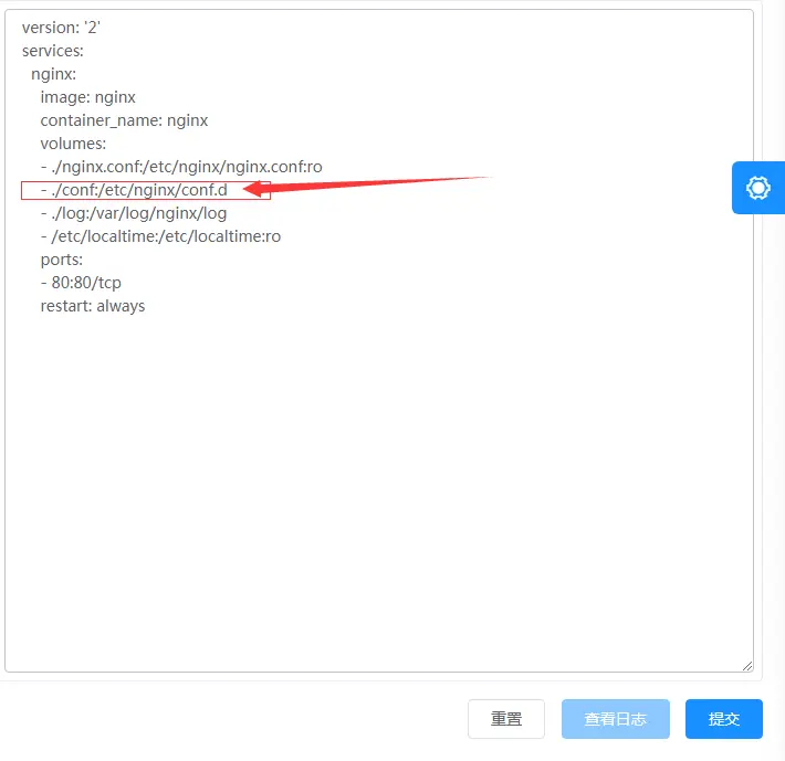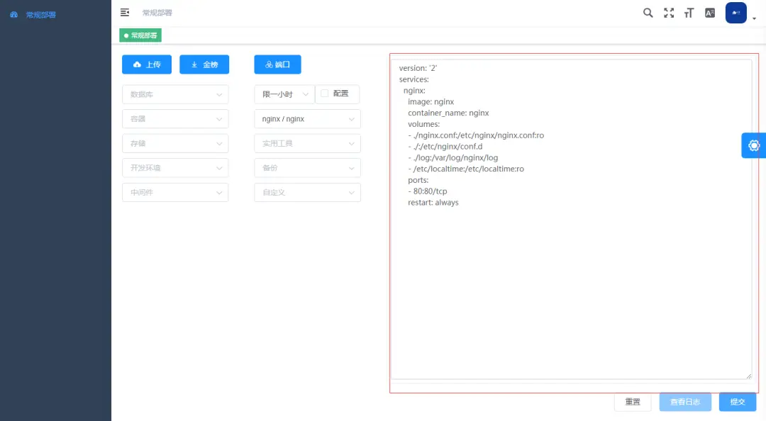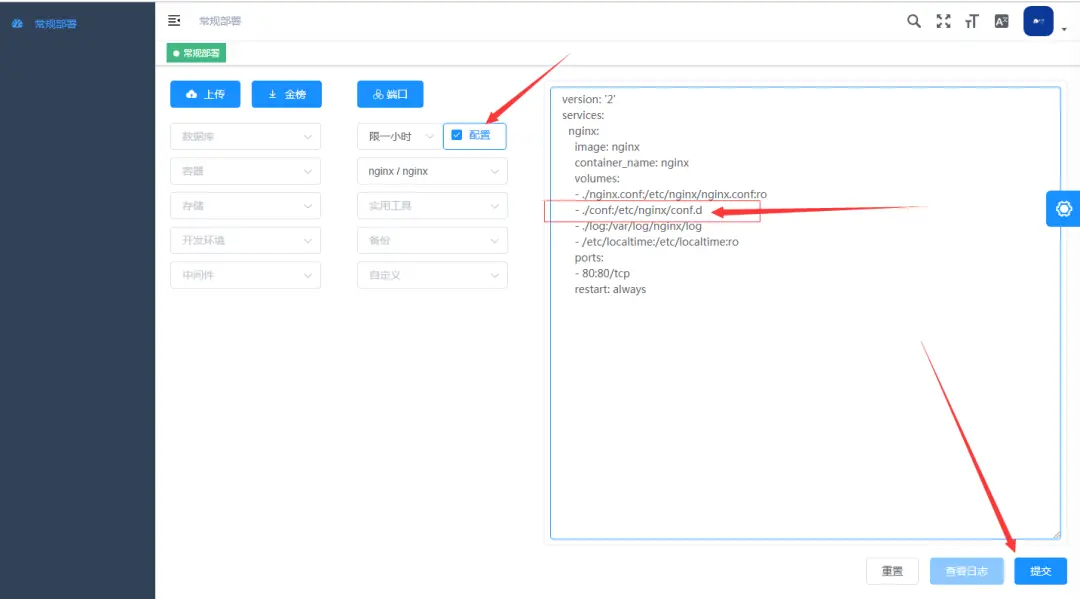 而针对nginx的特殊性我们要配置各种后端的重定向业务,所以我们这里在部署nginx之前勾选配置再选择提交按钮: