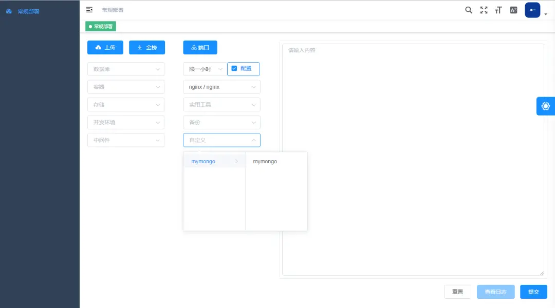 当我们选择完毕想要部署的项目后右侧信息栏会自动出现相应的配置参数。根据实际情况按照我所列举的格式进行配置后点击提交后台开始自动部署。并且将实时反馈后台执行日志(如下图)