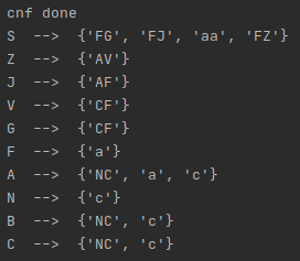 - Grammar in CNF: