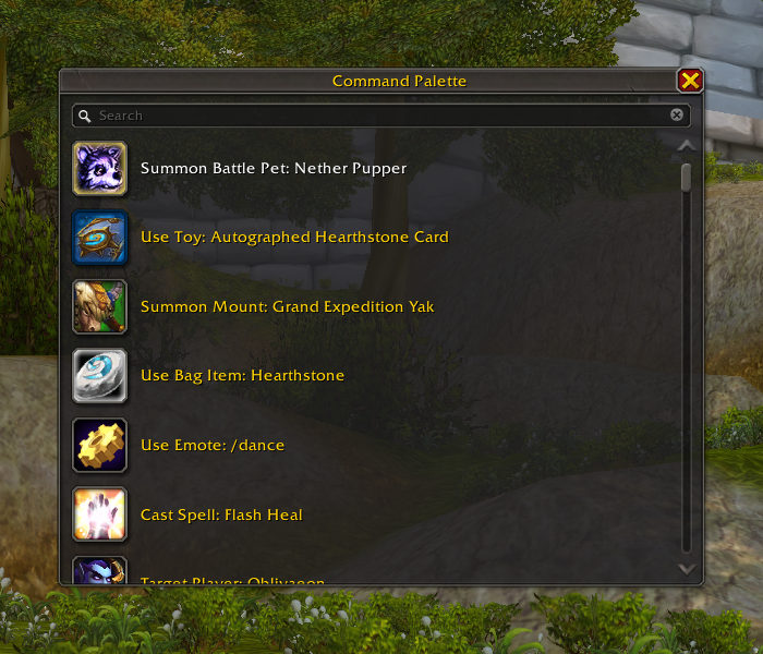 Consider making Bindings for your addons features. Command Palette adds all game and addon bindings to the interface. This helps your users regardless of them using Command Palette.