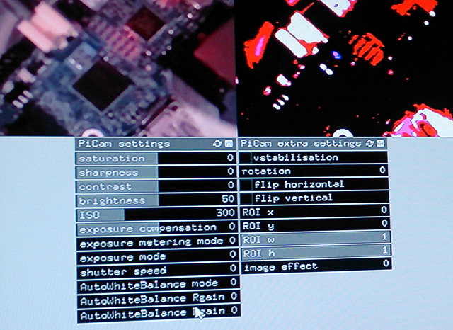 ofxCvPiCam is a minimal grabber for the Raspberry Pi Camera module. It uses the MMAL interface to grab frames and convert them the cv::Mat type which can be processed using the typical opencv calls.