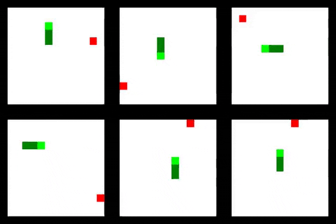 Vectorised and massively scalable implementation of a snake-like game as a reinforcement learning environment. The environment is highly customisable and can be run in either single-agent (classic snake) or multi-agent (gridworld http://slither.io/) mode.