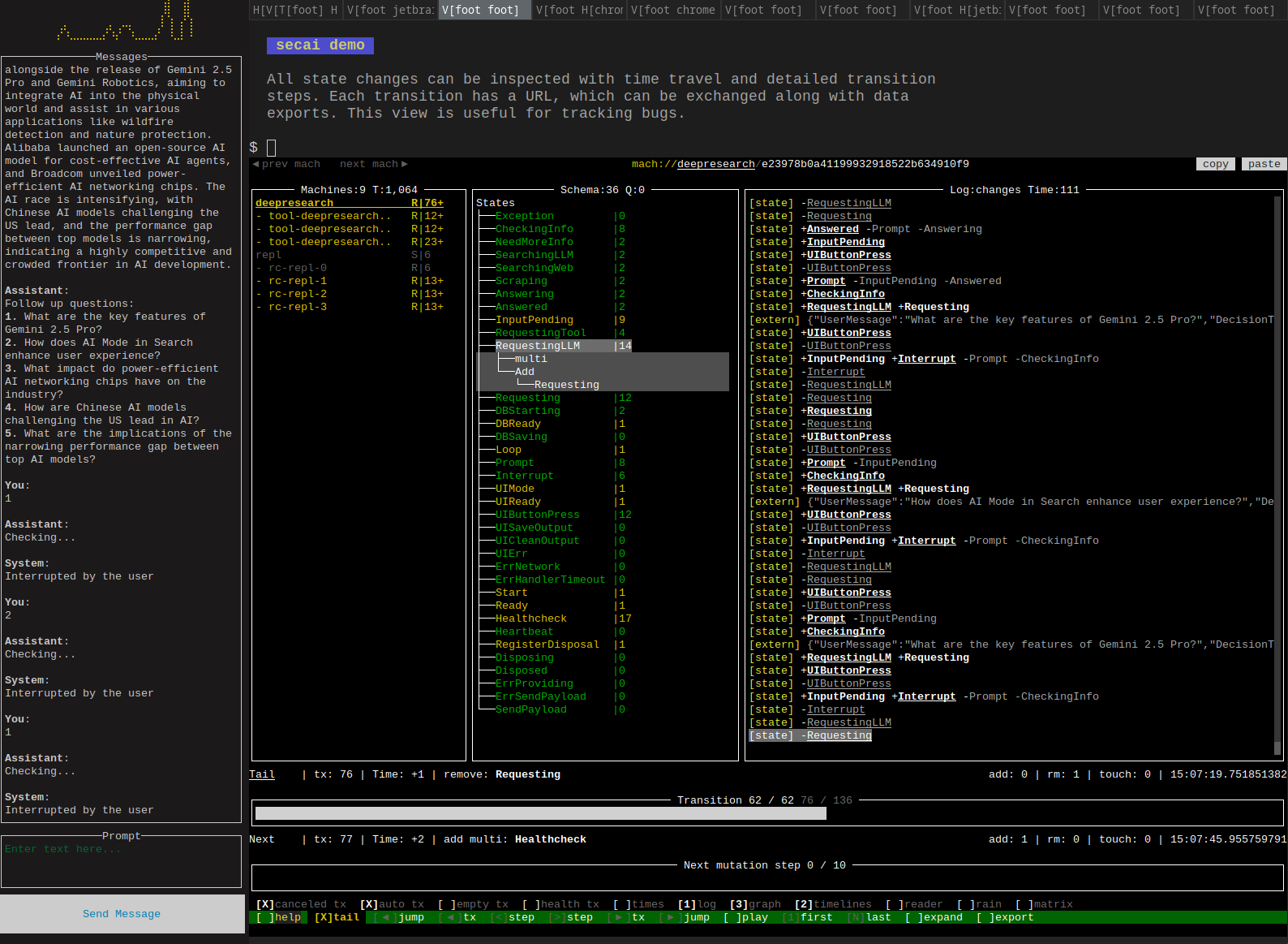 The following devtools are for the agent, the agent's dynamic memory, and tools (all of which are the same type of state machine).