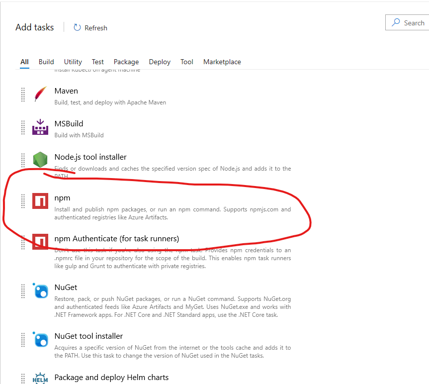 Modify the npm command as shown below. What we are doing here is basically asking the pipeline to run "npm run-script build" so it can generate static files for us to deploy. After doing that, dont press "Save and Queue" but press just "Save". We still have a little bit to do before we can run this pipeline. You can try queuing it if you're feeling curious and then come back to Step 7.