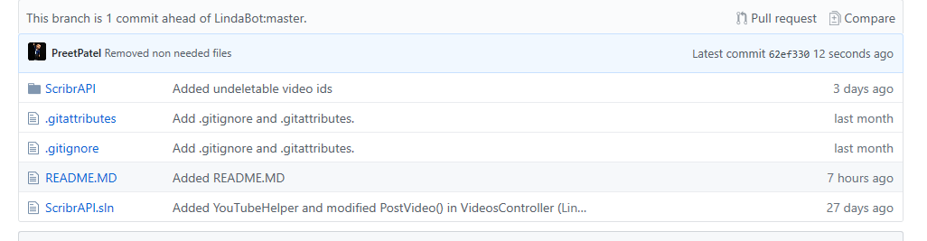 - Your ScribrAPI.sln file and ScribrAPI folder are on the root of the repo