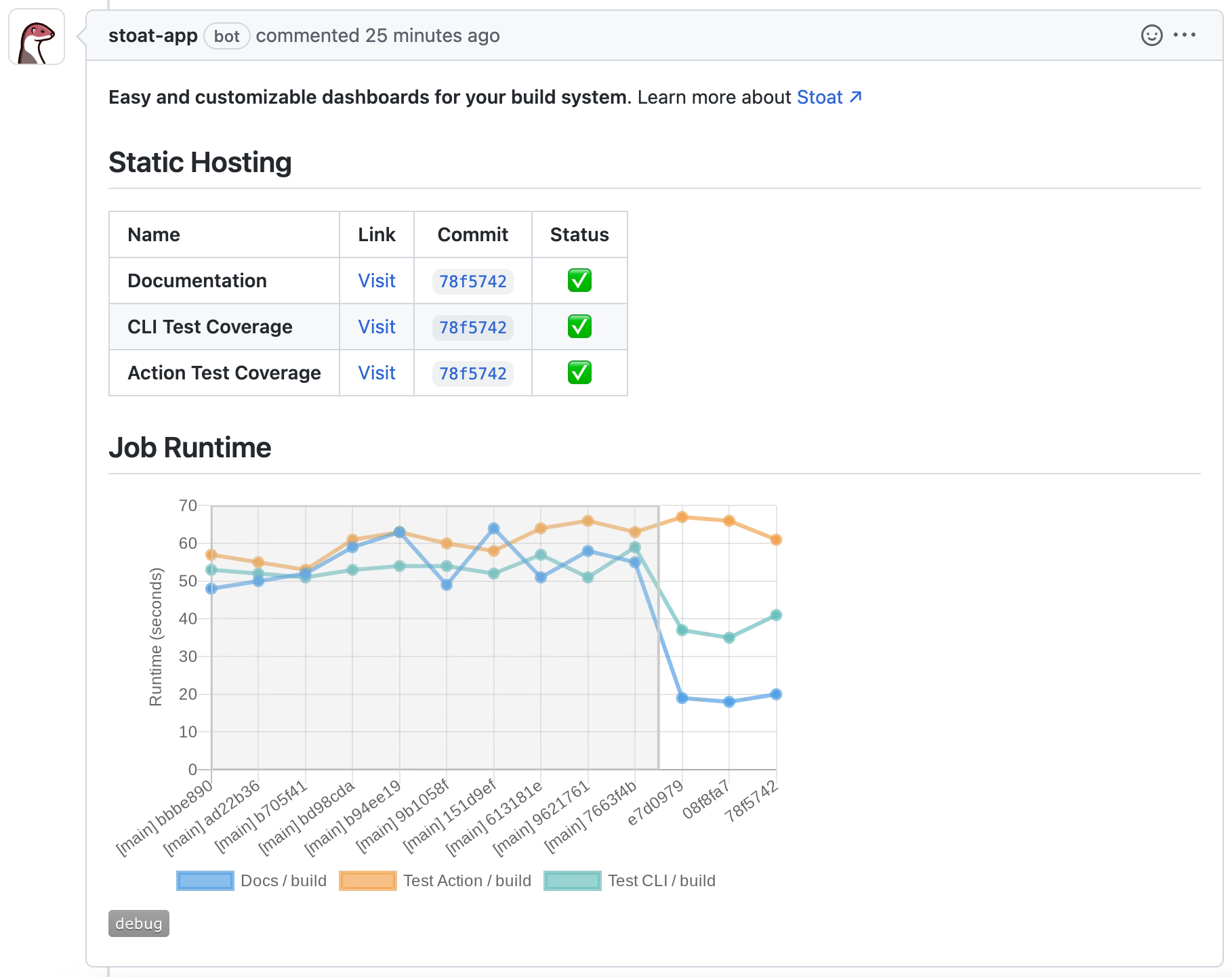 You can view a chart of GitHub job runtimes in a PR comments in just two minutes!