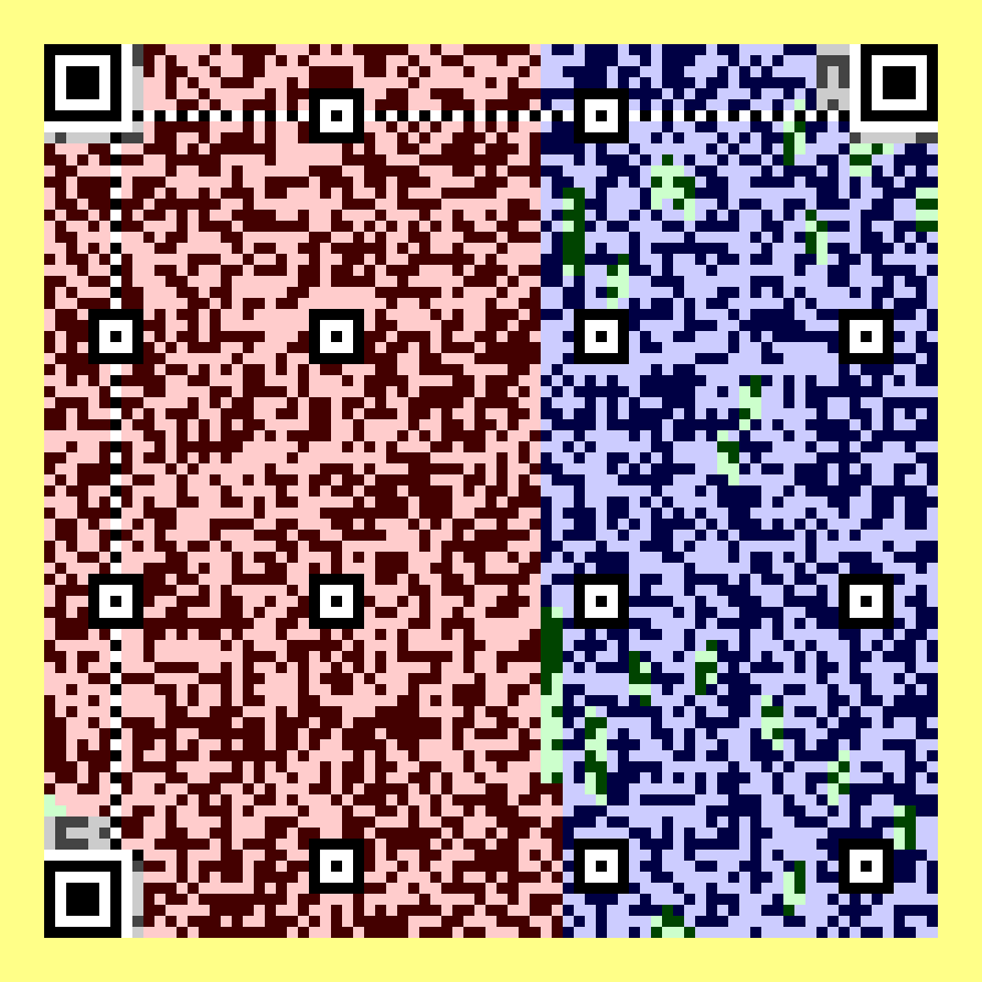 The library allows custom padding in the QR code, for "hidden" data, but also provides mapping to the actual pixels so you can adjust padding to make patterns in the final bar code which are still correct ECC. E.g.